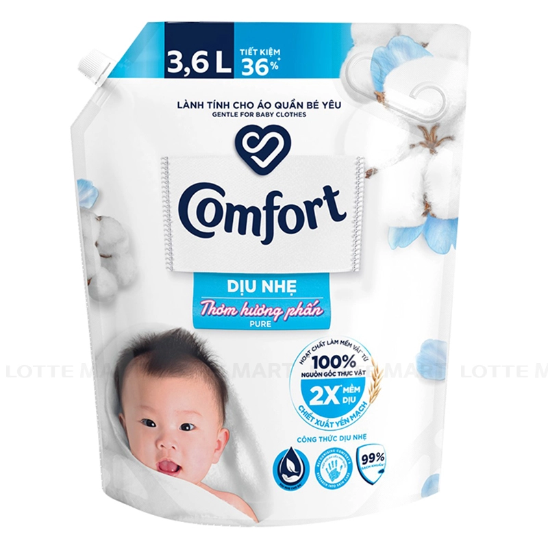 - Nước Xả Vải Comfort Baby 1 Lần Xả Hương Phấn Thơm mềm mại, an toàn phù hợp với quần áo và làn da nhạy cảm của trẻ nhỏ, giúp khử mùi sữa, chống nhăn vải và ngăn quần áo sinh ra tĩnh điện.