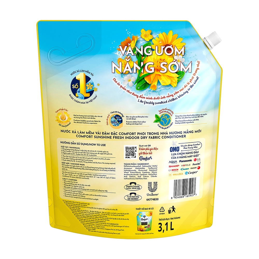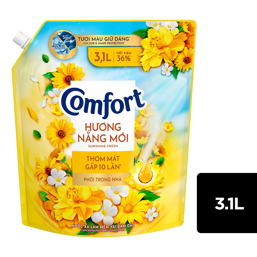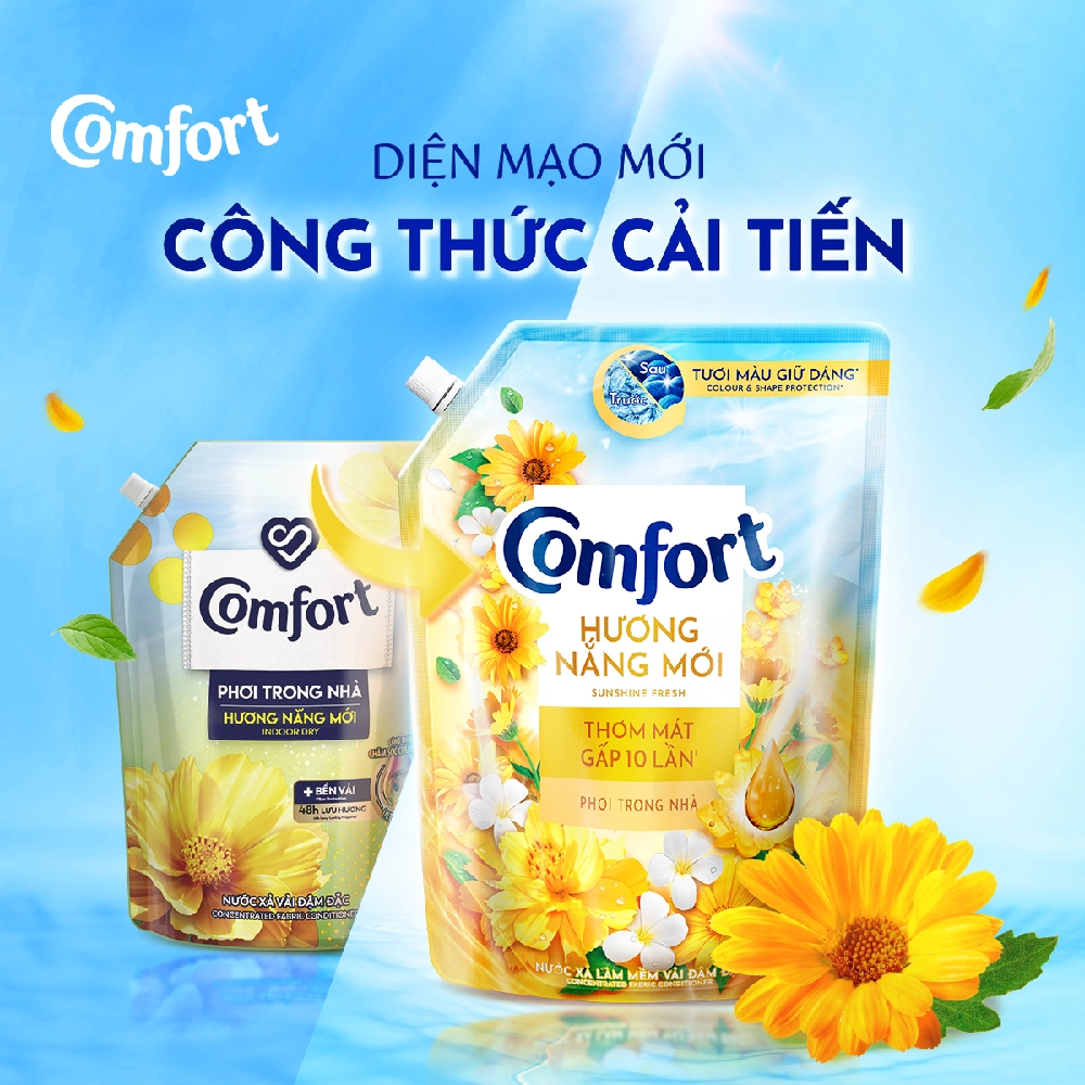 - Nước Xả Vải Comfort Phơi Trong Nhà Hương Nắng Mới với công thức Chăm Sóc Chuyên Sâu Ultra Care thấm sâu vào từng sợi vải, giúp bảo vệ độ bền và giữ áo quần luôn tươi màu.