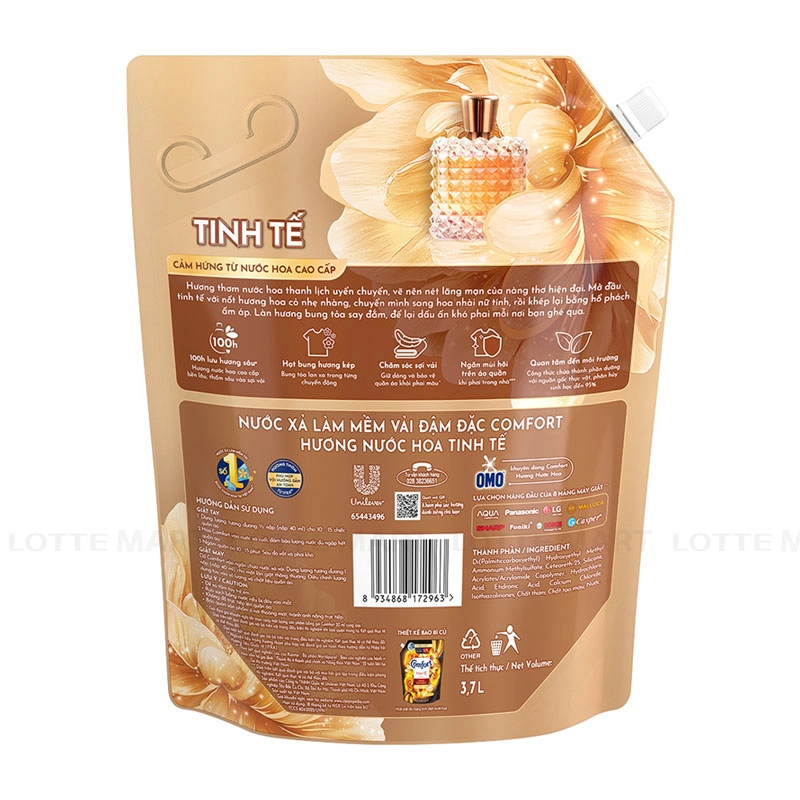 Nước Xả Vải Comfort Hương Nước Hoa Thiên Nhiên Tinh Tế Túi 3.7L
