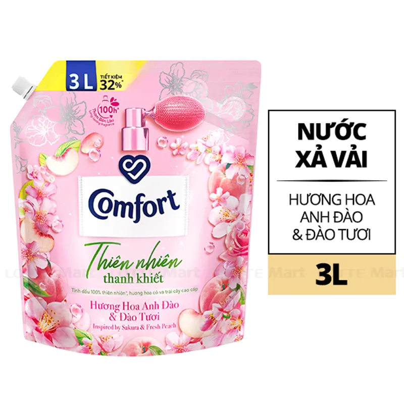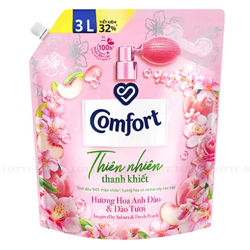 - Nước Xả Vải Comfort Thiên Nhiên Thanh Khiết Hương Hoa Anh Đào & Đào Tươi Túi 3L là lựa chọn hoàn hảo cho những ai yêu thích hương thơm nhẹ nhàng, thanh dịu và không nồng gắt trên áo quần.