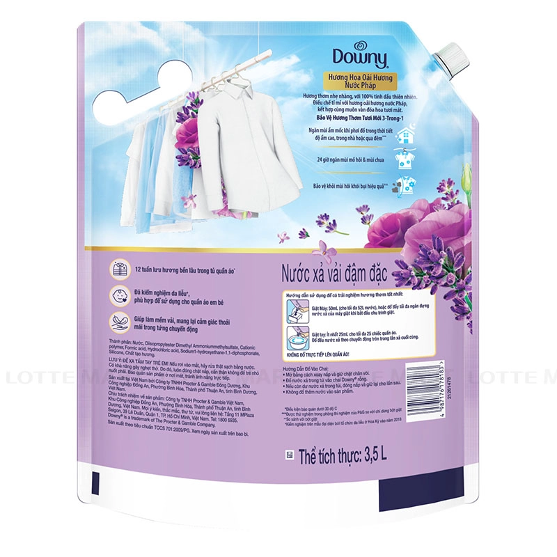 Nước Xả Vải Downy Hương Hoa Oải Hương Nước Pháp 3.5L