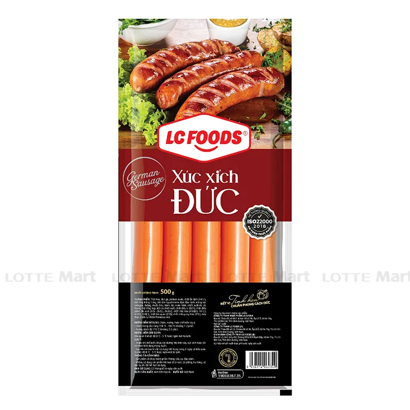 - Xúc xích Đức LC Foods 500g với công thức chế biến đặc biệt còn mang tới hương vị xúc xích Đức nướng thơm lừng, kích thích vị giác.