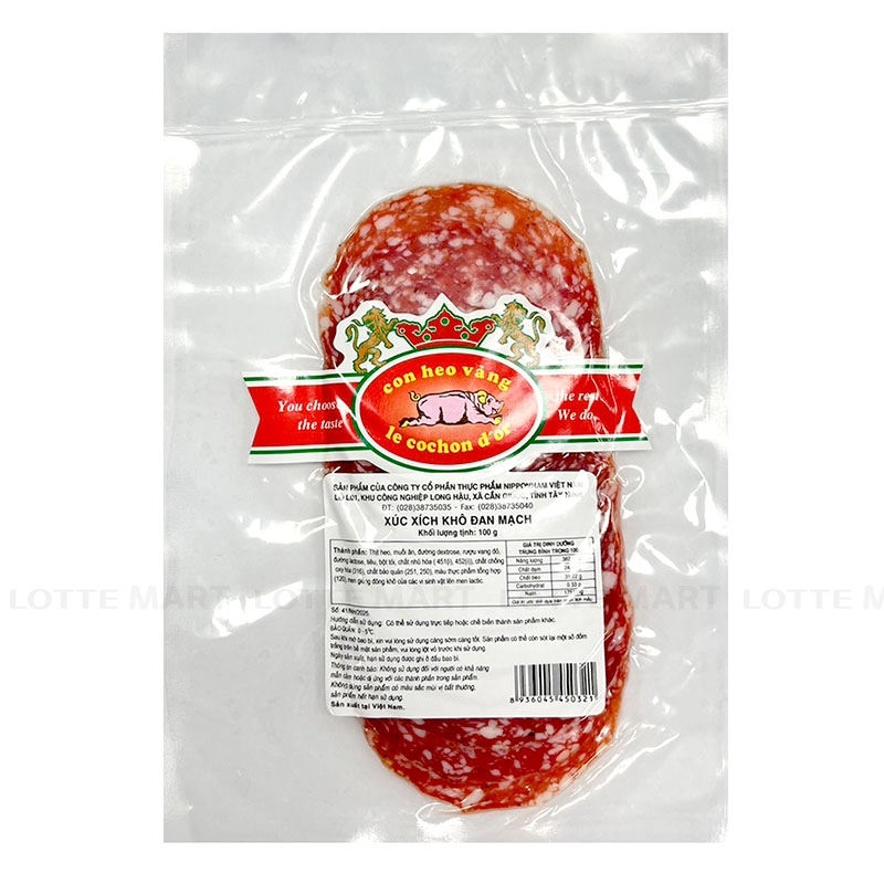 Thành phần: Thịt heo 90%, đường dextrose, muối ăn, tỏi, tiêu.