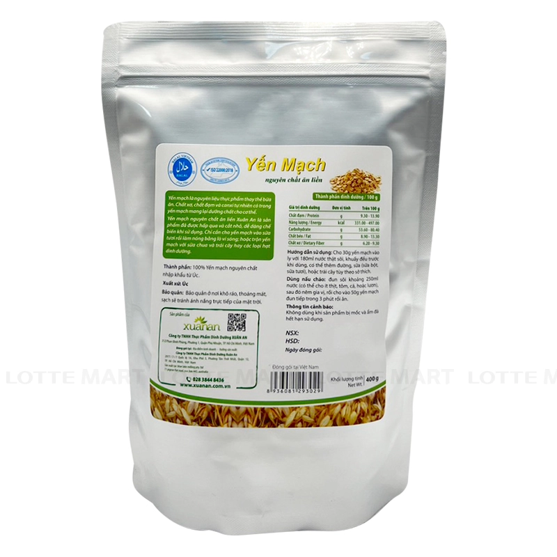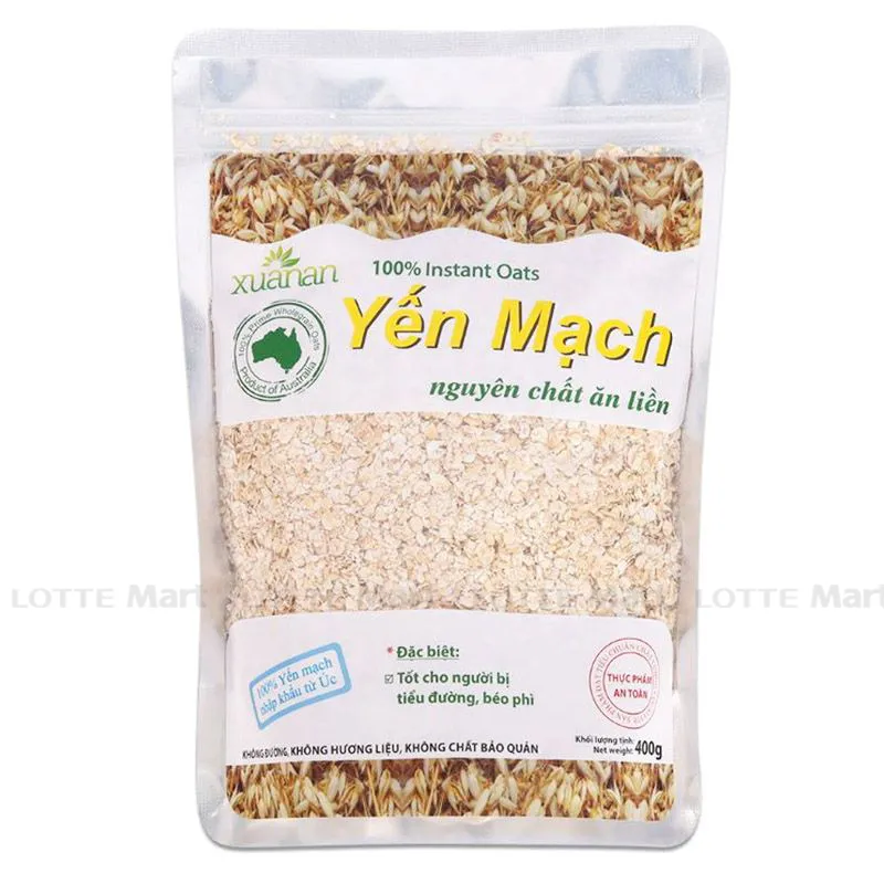 - Yến Mạch Úc Xuân An Nguyên Chất được làm từ 100% yến mạch nhập khẩu Úc, mang đến nguồn dinh dưỡng dồi dào và hương vị thơm ngon. Đây là lựa chọn lý tưởng cho bữa sáng hoặc bữa ăn nhẹ, giúp bạn bắt đầu ngày mới tràn đầy năng lượng.