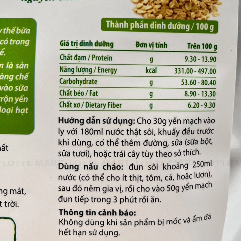- Yến mạch chứa nhiều chất xơ, protein, vitamin và khoáng chất, hỗ trợ tiêu hóa và tăng cường sức khỏe.