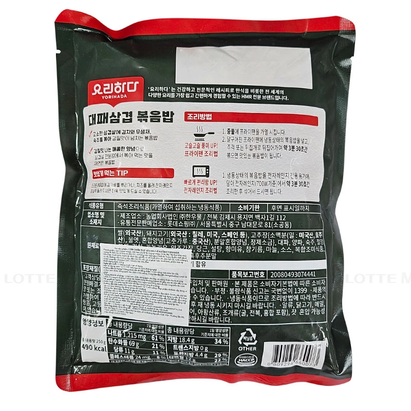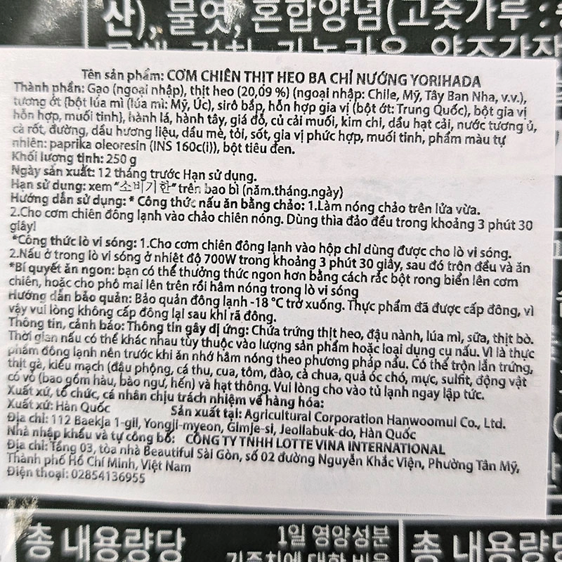 - Cơm Chiên Thịt Heo Ba Chỉ Yorihada là món cơm chiên nhập khẩu từ Hàn Quốc, kết hợp hài hòa giữa cơm trắng dẻo thơm và thịt ba chỉ heo thái mỏng nướng xém cạnh, mang đến hương vị đậm đà và hấp dẫn ngay từ lần đầu thưởng thức.