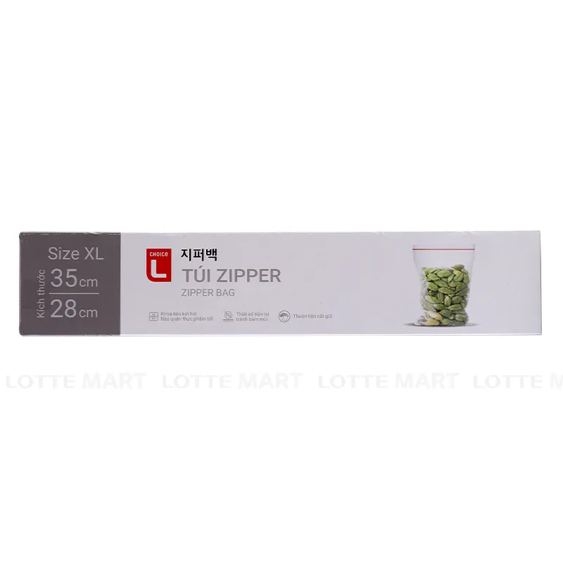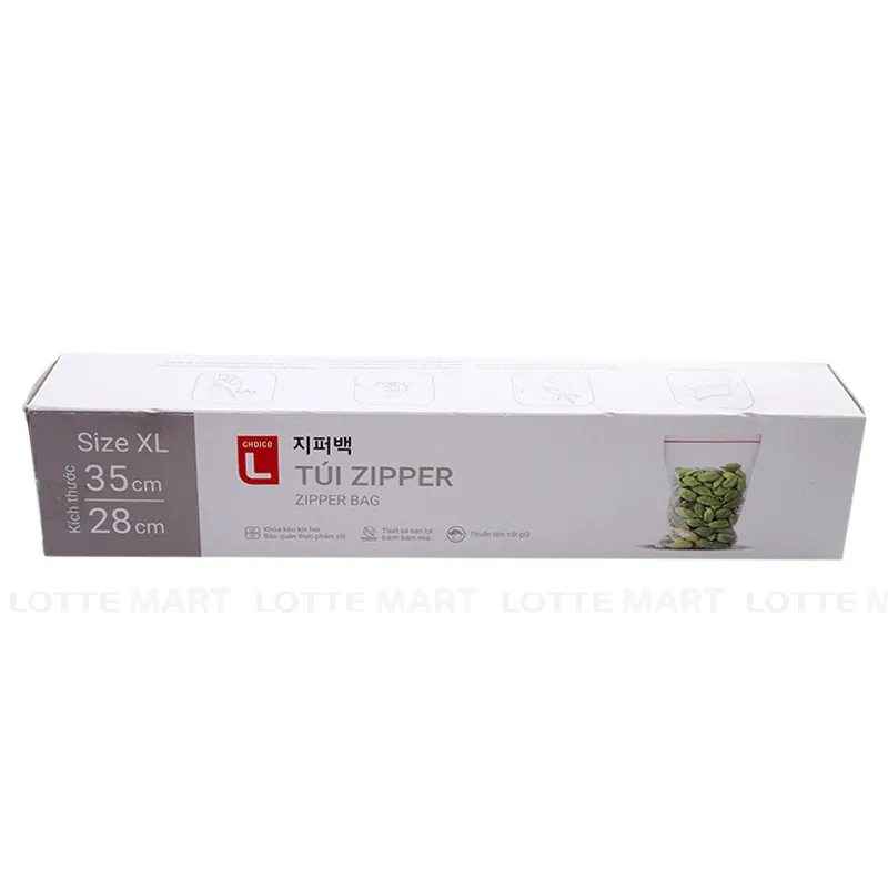 Túi Zipper Choice L 10 Túi Size XL (35cmx28cm) có khả năng chịu được nhiệt độ cao, giúp bảo quản thực phẩm tốt, an toàn cho người sử dụng. Thiết kế với đường zip trên miệng túi rất thuận tiện để cất giữ thực phẩm bên trong mà không cần phải qua một công đoạn trung gian như buộc, thắt miệng túi lại.