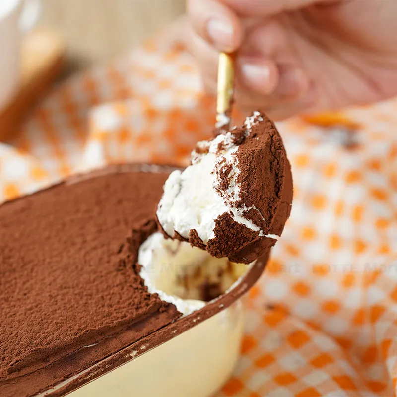 Lớp bánh mềm mịn thấm đẫm cà phê và lớp kem béo ngậy, mịn màng. Được làm từ những nguyên liệu tươi ngon, từng tầng bánh tiramisu là sự hòa quyện hoàn hảo giữa vị cà phê đậm đà, vị kem tươi thanh nhẹ đầy quyến rũ.