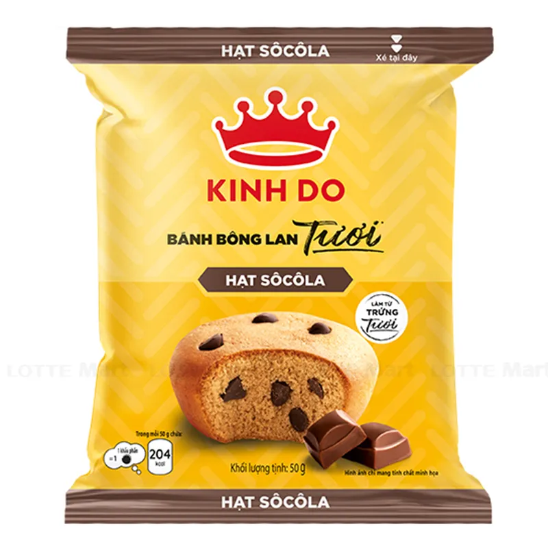 Sản phẩm được làm từ bơ, sữa, trứng, và cacao khiến cho thành phẩm thơm ngon vị bơ sữa và cacao dịu nhẹ. Bánh bông lan mềm mịn có hạt socola ngon ngọt dịu nhẹ mà không bị ngán.Thành phần: Trứng gà 33%, đường, bột mì, dầu thực vật (dầu nành), chất giữ ẩm (422), chất nhũ hoá, hạt socola (3%), bột bắp, sữa tươi (1%), chất điều chỉnh độ axit, bột lòng đỏ trứng, bột cacao (0.5%), hương thực phẩm tổng hợp socola, màu thực phẩm tự nhiên, chất tạo xốp, muối, chất bảo quản, chất ổn định...Cách sử dụn: Dùng ngay. Có thể dùng kèm 1 ly sữa hoặc nước trái cây cho buổi sáng đủ chất.