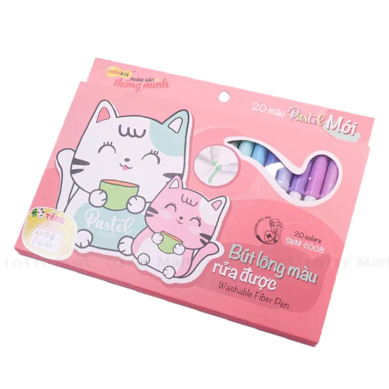 - Bộ bút lông 20 màu Fiber Pen Washable Colokit SWM-C008 chất liệu mực an toàn có thể rửa được, không độc hại, không tạo mùi khó chịu khi sử dụng.
