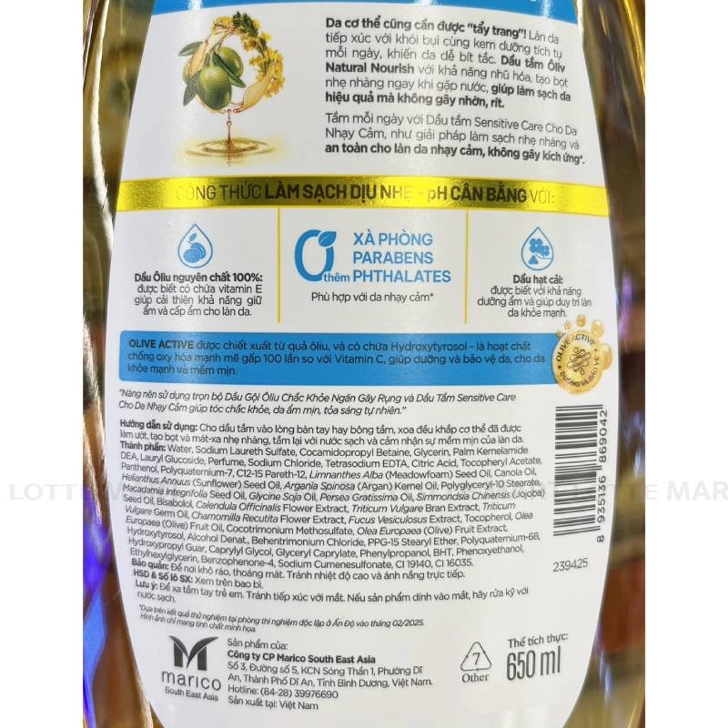 Dầu Tắm Ôliv Sensitive Care Cho Da Nhạy Cảm Chai 650ml