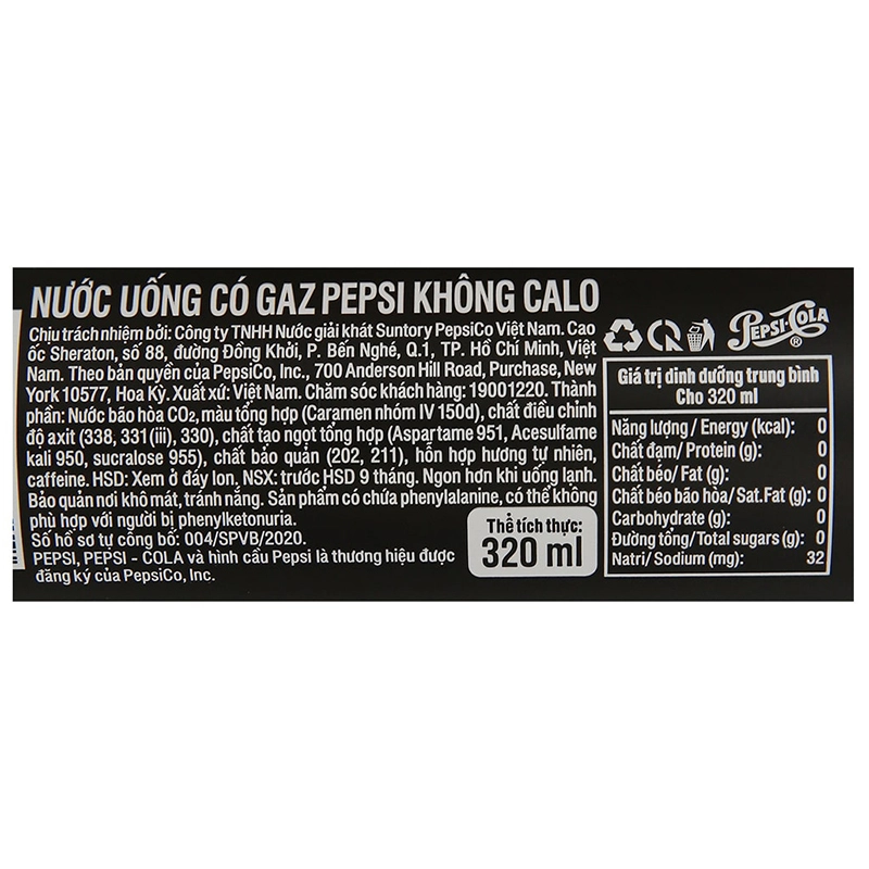 Nước Ngọt Pepsi Không Calo Lon 320ml