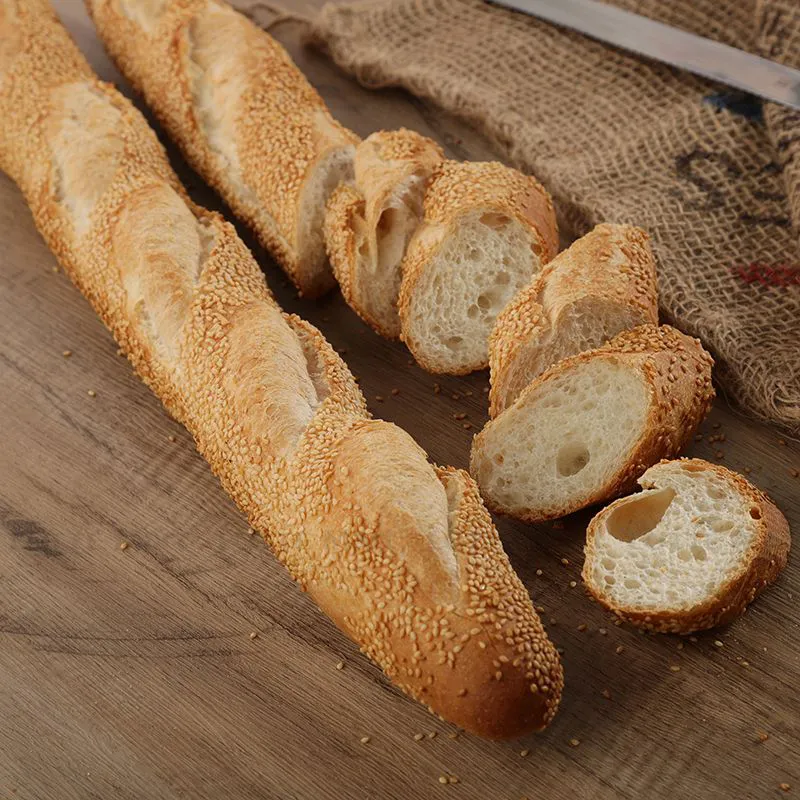- Bánh Mì Baguette Mè thơm ngon chuẩn Pháp, vỏ bánh giòn,phủ lớp mè thơm, béo, ruột mềm, thơm ngậy vị bơ.