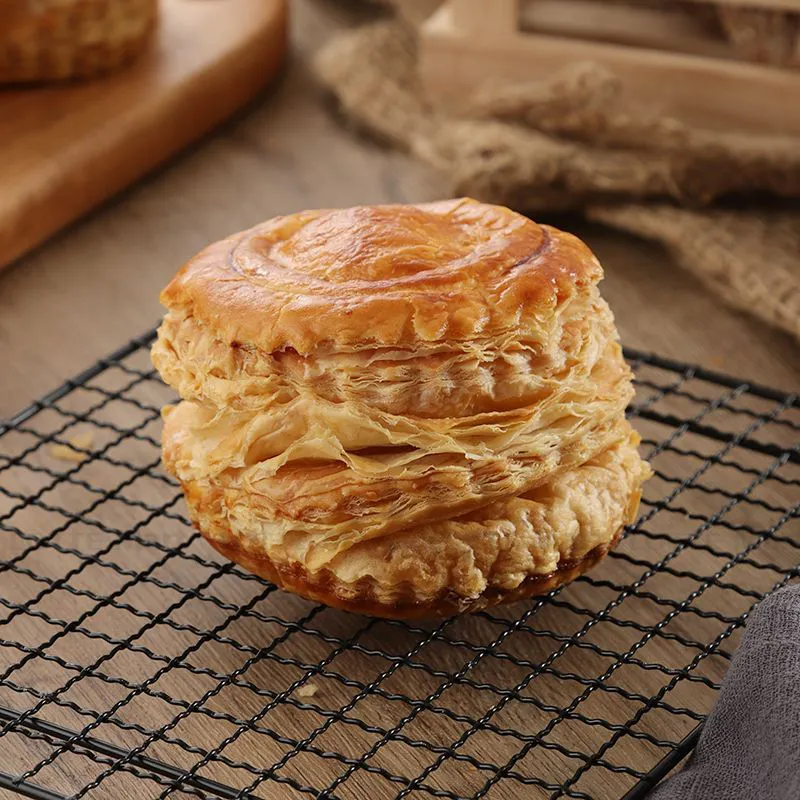 - Lớp vỏ ngoài được làm từ bột mì chất lượng cao, nướng vàng giòn rụm, tạo nên sự giòn tan thú vị ngay khi cắn vào, giữ cho nhân bên trong luôn ẩm mượt.