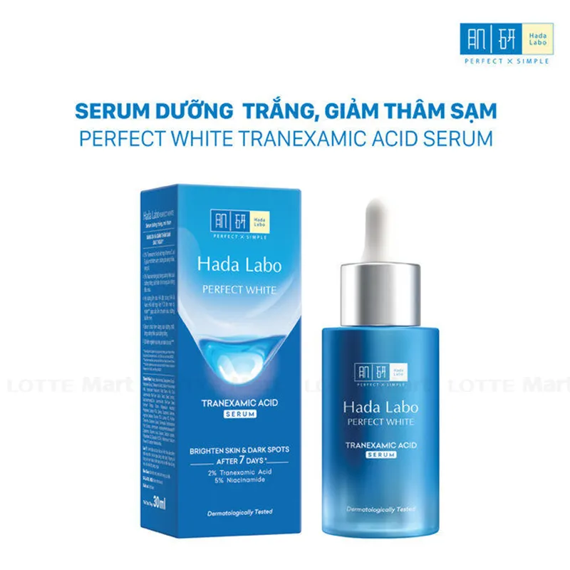 - Serum Hada Labo Dưỡng Sáng Da Tối Ưu Chai 30ml với thành phần chứa 2% T.X.A kết hợp Vitamin C và E, 5% Niacinamide giúp cải thiện tình trạng da không đều màu, dưỡng da sáng khỏe, rạng rỡ.