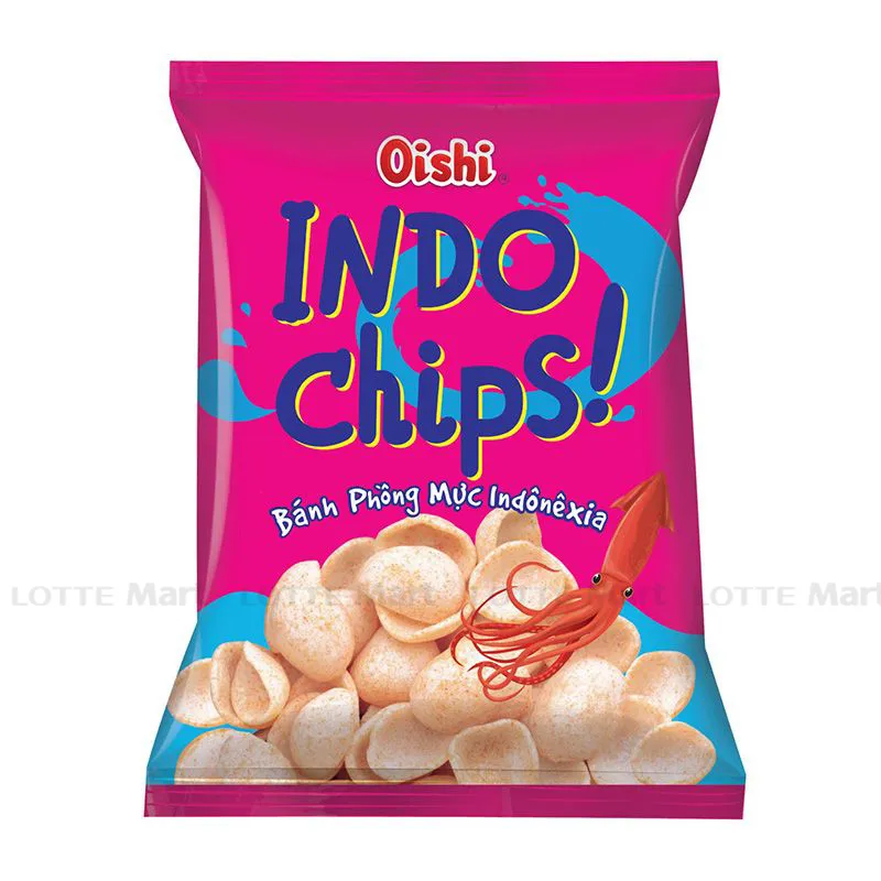 - Bánh phồng mực Indonesia Indo Chips Oishi được làm từ nguyên liệu từ nhiên như bột mì, bột bắp, tinh bột sắn...