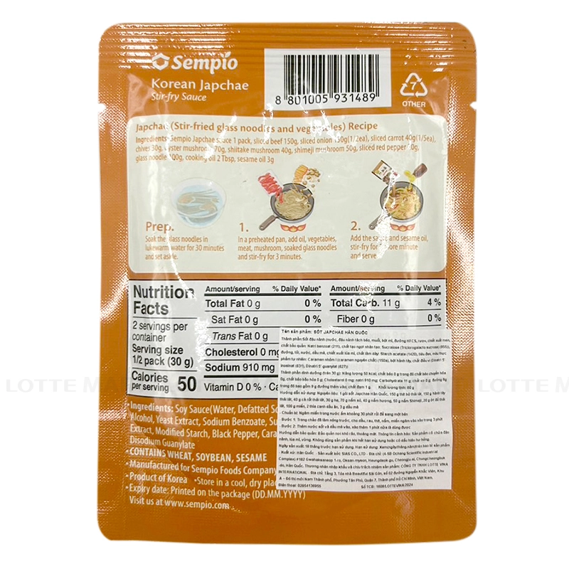 - Với Sốt Japchae Sempio, bạn chỉ cần một ít mì, thịt bò hoặc thịt lợn, cùng với các loại rau củ tươi ngon để dễ dàng chuẩn bị món japchae chỉ trong vài bước. Sản phẩm này không chỉ tiết kiệm thời gian mà còn mang lại sự tiện lợi cho những ai yêu thích ẩm thực Hàn Quốc.