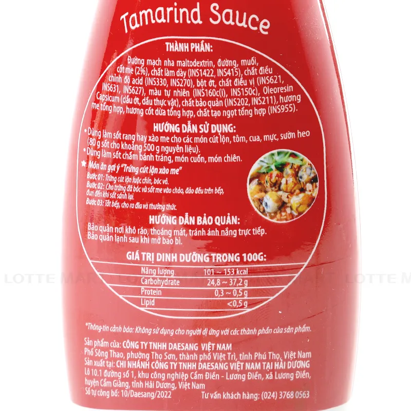 - Sản phẩm có màu nâu bắt mắt, nổi bật vị chua thanh đặc trưng từ me. Hương vị sốt được căn chỉnh theo tỉ lệ pha trộn các loại gia vị cho ra đời hương vị tuyệt hảo giúp món ăn của bạn dậy mùi và hấp dẫn hơn bao giờ hết.