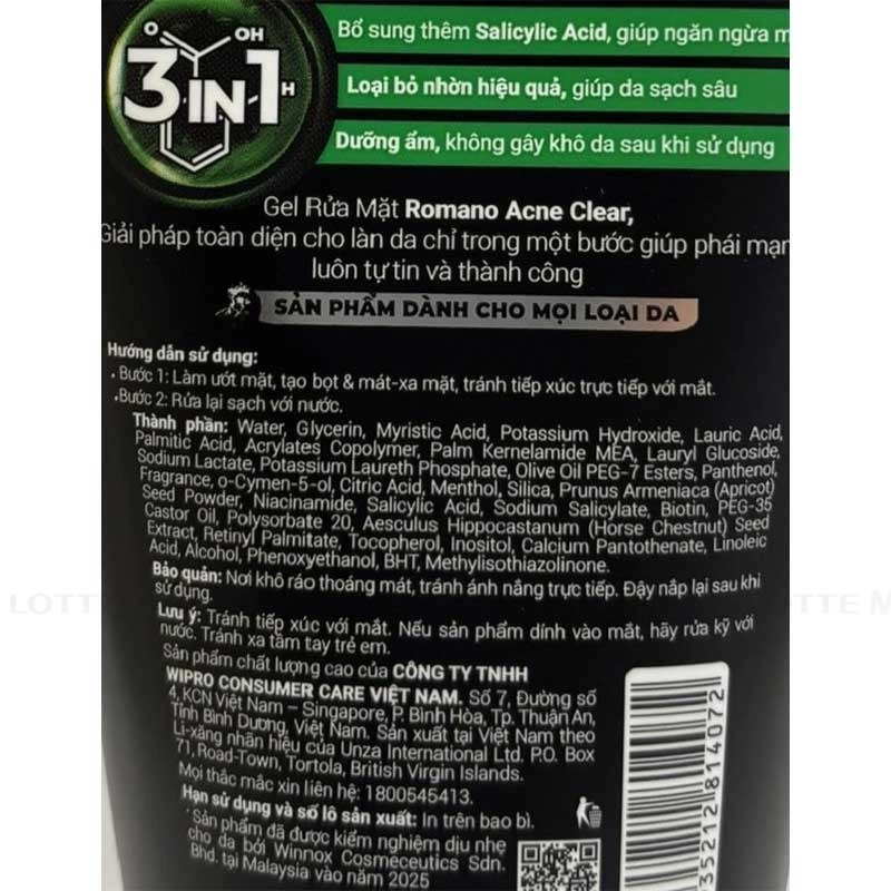 Sữa Rửa Mặt Romano Ngừa Mụn với công nghệ tiên tiến kết hợp các vitamin thiết yếu, giúp làm sạch sâu, loại bỏ bụi bẩn và bã nhờn, đồng thời mang đến cảm giác tươi mát, sảng khoái và chăm sóc da.