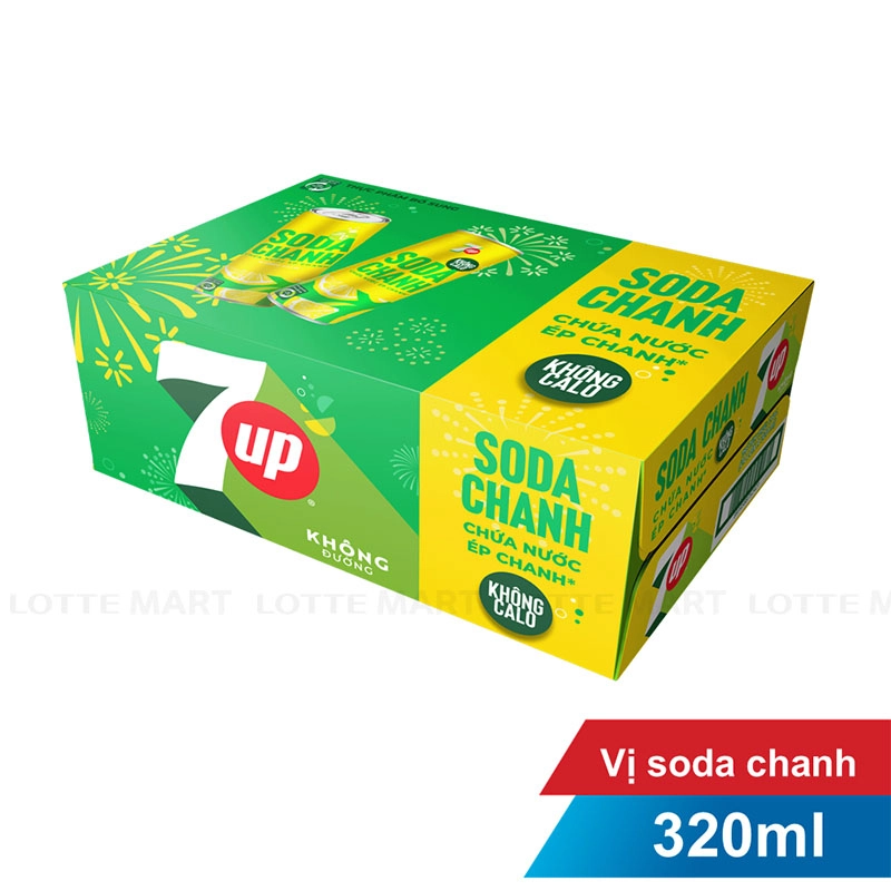 - Thùng 24 Lon Nước Ngọt Soda Chanh Không Calo 7Up 320ml được sản xuất tại Việt Nam trên dây chuyền, công nghệ hiện đại của Mỹ, đảm bảo tuyệt đối về chất lượng. Sản phẩm không đường, không calo, có hương vị soda chanh thơm ngon tươi mát.
