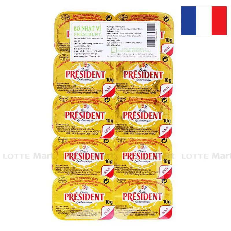 - Bơ lạt President có nguồn gốc từ Pháp và là một trong những thương hiệu nổi tiếng thế giới về các sản phẩm từ sữa.