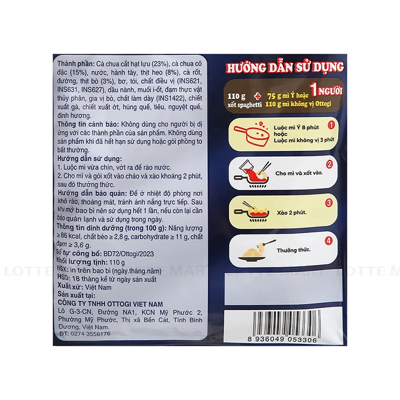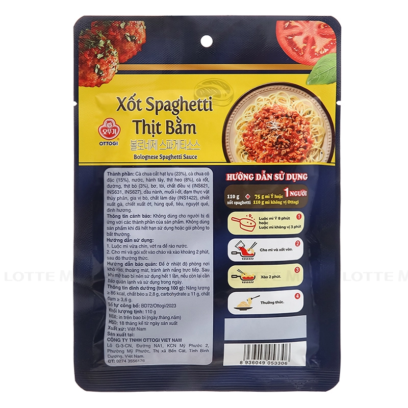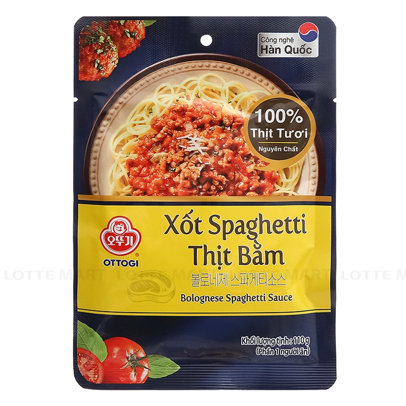 - Xốt Spaghetti Ottogi Thịt Bằm Gói 110G là loại sốt nấu mì Ý pha sẵn tiện lợi. Chỉ cần mì và xốt, không cần bổ sung nguyên liệu khác mà vẫn đậm vị với thịt tươi nguyên chất.