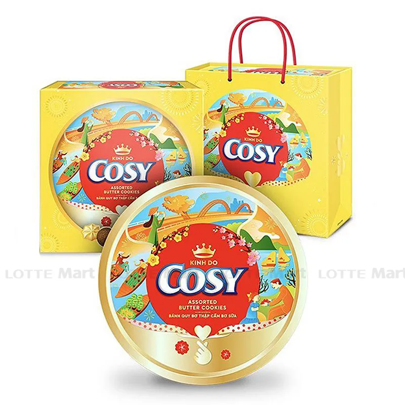 - Bánh Quy Cosy Thập Cẩm Bơ Sữa Hộp Thiếc 378G là một sản phẩm của thương hiệu Cosy – thuộc công ty Mondelez Kinh Đô, nổi tiếng với các loại bánh kẹo thơm ngon, bổ dưỡng và an toàn cho sức khỏe. Bánh quy bơ thập cẩm bơ sữa của Cosy được làm từ các nguyên liệu chất lượng cao, như bột mì, bơ, sữa, hạt dưa, hạt mè và các loại hương liệu tự nhiên. Bánh quy có hình dạng tròn với nhiều kiểu dáng, mỏng, giòn tan, thơm béo và ngọt dịu. Bánh thơm ngot, phù hợp với sở thích của nhiều người, nhiều độ tuổi.