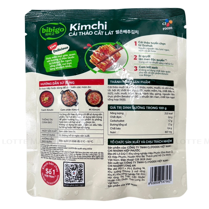 Kim chi cải thảo cắt lát Bibigo Ông Kim's được sản xuất theo công nghệ hiện đại, mọi khâu từ tuyển chọn nguyên liệu tới chế biến, đóng bao bì đều diễn ra khép kín dưới sự giám sát và kiểm tra nghiêm ngặt. Sản phẩm không chứa hóa chất, chất bảo quản độc hại, đảm bảo an toàn cho sức khỏe người tiêu dùng. Đối với những người bận rộn, không có nhiều thời gian chuẩn bị bữa ăn thì thực phẩm chế biến sẵn là một giải pháp hữu hiệu.