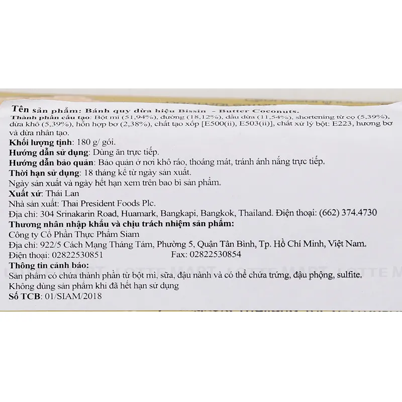 - Bánh Quy Bissin Bơ Dừa Gói 180G được từ những nguyên liệu đã được kiểm định, không chứa phẩm màu hoặc hóa chất độc hại, đảm bảo chất lượng. Đặc biệt, bánh còn chứa nhiều thành phần hữu ích cho sức khỏe, cung cấp nhiều năng lượng, cho bạn một ngày học tập, làm việc hiệu quả.
