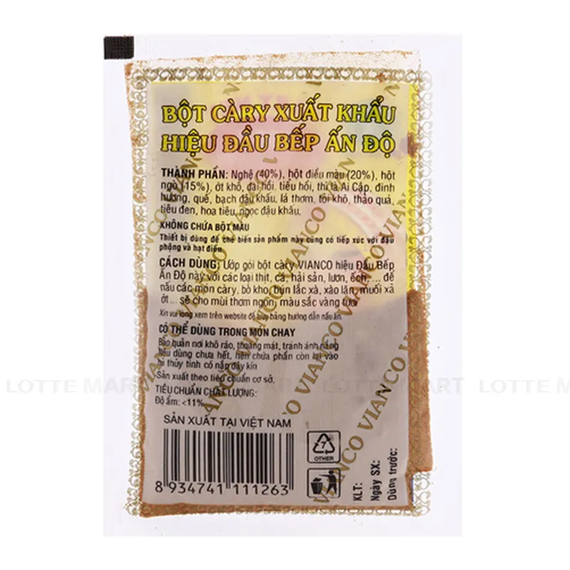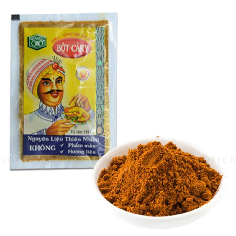 Bột Cà Ri Việt Ấn Gói 10g được làm từ các thành phần tự nhiên như nghệ, hột điều màu, ớt khô, đại hồi, tiểu hồi, thì là Ai Cập, đinh hương, quế, bạch đậu khấu, lá thơm, tỏi khô, thảo quả, tiêu đen, hoa tiêu, ngọc đậu khấu. Tất cả các thành phần đều được tán nhỏ thành bột nên rất dễ dàng và tiện lợi khi thêm nếm món ăn.