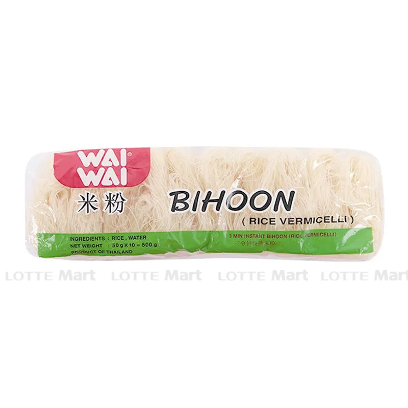 Bún gạo khô Wai Wai khi chế biến sẽ có vị ngon như bún tươi, ăn trực tiếp hoặc xào, nấu đều phù hợp. Bún khô còn có thể lưu trữ được trong thời gian dài, không mất đi gia trị dinh dưỡng, đem lại cho người dùng những bữa ăn ngon miệng. Thành phần: Bột gạo, muối ăn, chất ổn định. Hướng dẫn sử dụng: Bún xào: Ngâm bún trong nước lạnh khoảng 15 - 20 phút, vớt bún ra để ráo nước. Xào thịt trước, tôm, cua và các loại gia vị khác gần chín. Sau đó bỏ bún vào đảo đều cho nóng là dùng được. Bún tươi: Cho bún vào nước đang sôi, dùng đũa khuấy đều, nấu khoảng 4 phút vớt ra xả với nước lạnh để khoảng 5 phút. Sau đó sử dụng như bún tươi: nấu với nước lèo, lẩu, cuốn với bánh tráng... Hướng dẫn bảo quản: Nơi khô ráo, thoáng mát, tránh ánh sáng trực tiếp từ mặt trời.