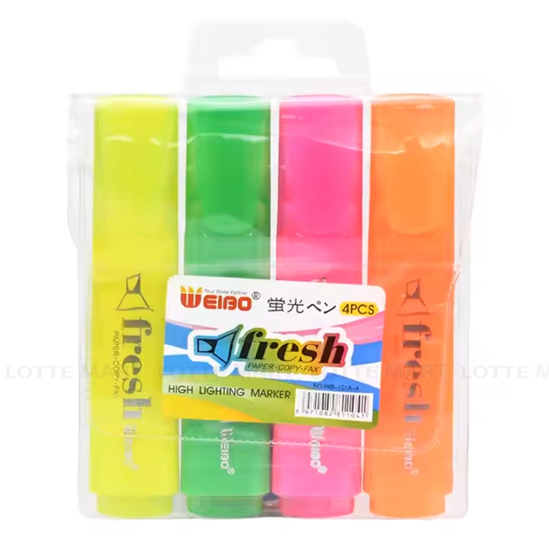 Bút Dạ Quang 4 Màu Weibo 101A-4 Hộp 4 Cây (Giao mẫu ngẫu nhiên)