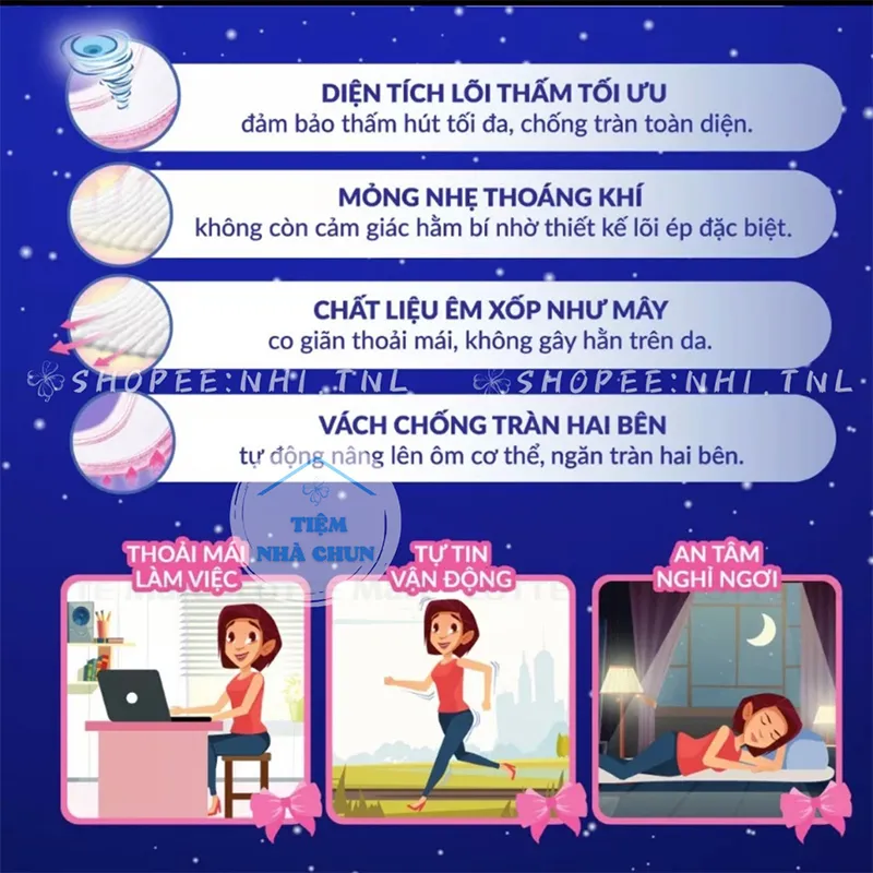 - Băng Vệ Sinh Ban Đêm Dạng Quần Diana Sensi với diện tích lõi thấm tối ưu đảm bảo thấm hút tối đa, chống tràn toàn diện.