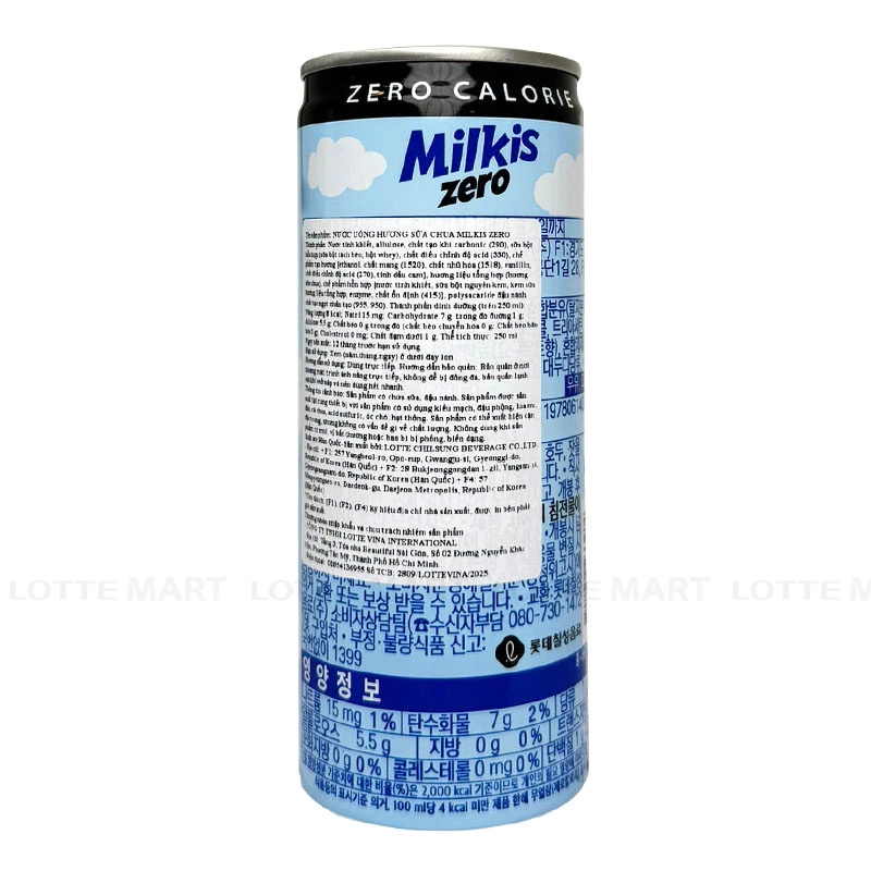 Soda Sữa LOTTE Milkis Không Đường nhập khẩu Hàn Quốc là sự kết hợp thú vị giữa soda sảng khoái và vị sữa dịu nhẹ, ngọt thanh, lạ miệng.