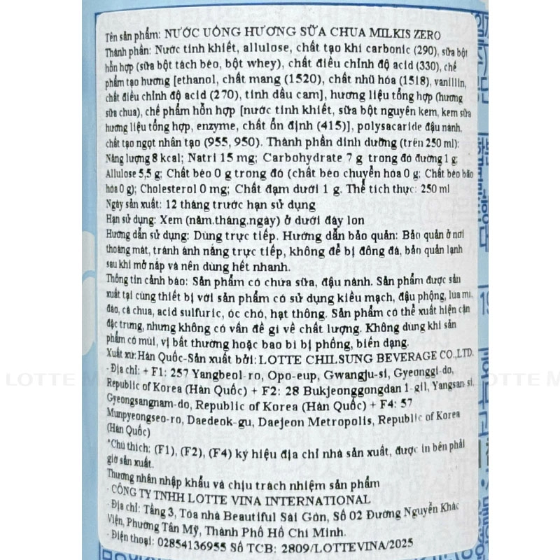 Soda Sữa LOTTE Milkis Không Đường 250ml
