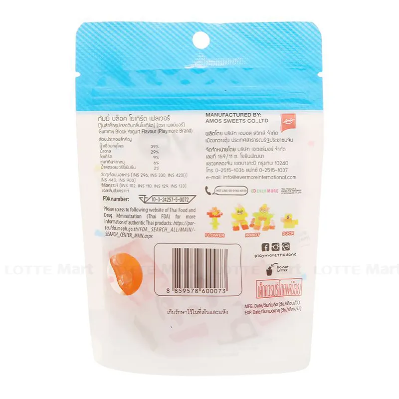 Kẹo Dẻo Playmore Xếp Hình Vị Sữa Chua với vị sữa chua mềm, dẻo và ngọt dịu sẽ là món ăn vặt hấp dẫn cho các bé. Từng viên kẹo dẻo vị sữa chua thiệt dai và thơm ngon, với khuôn mẫu những hình ảnh 3D độc đáo các bé sẽ thích mê, thỏa sức sáng tạo. Kẹo dẻo Playmore mang đến cho người thưởng thức hương vị ngọt ngào, hấp dẫn khó quên.