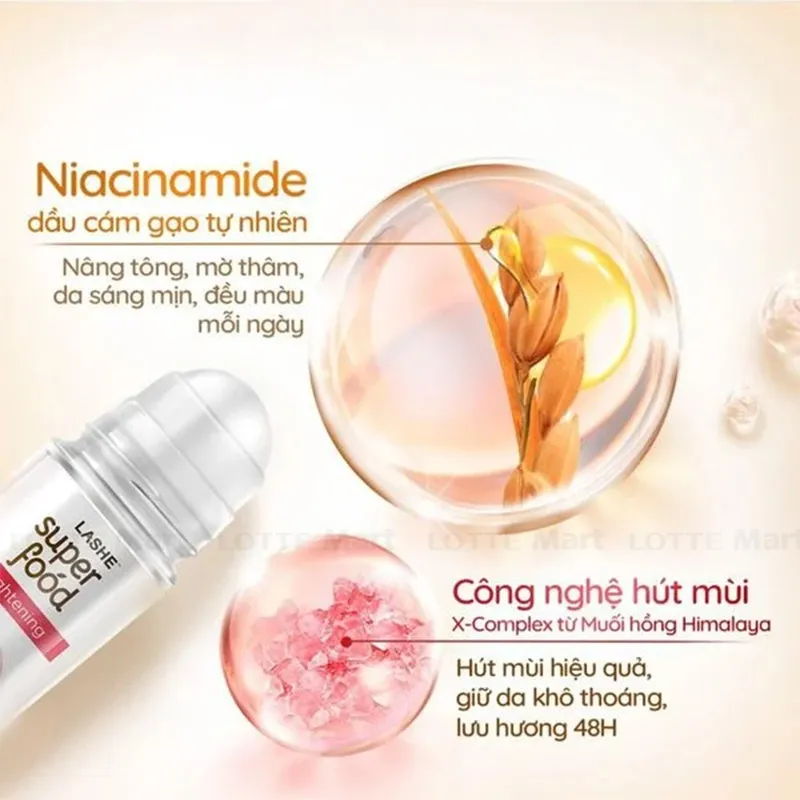 Lăn Khử Mùi LASHE Superfood Dưỡng Sáng Chai 50ml