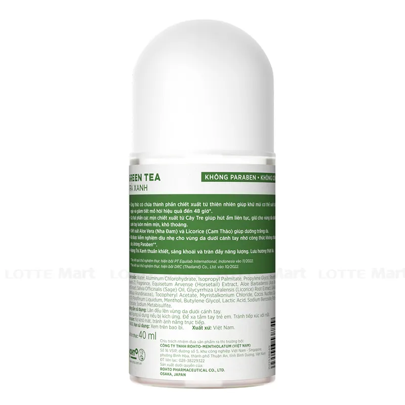 Cách dùng: Vệ sinh vùng da dưới cánh tay và lăn đều lên da. Lưu ý: Ngưng sử dụng nếu bị dị ứng. Để xa tầm tay trẻ em. Tránh tiếp xúc với mắt. Bảo quản nơi khô mát, tránh ánh nắng trực tiếp. Xuất xứ: Việt Nam.