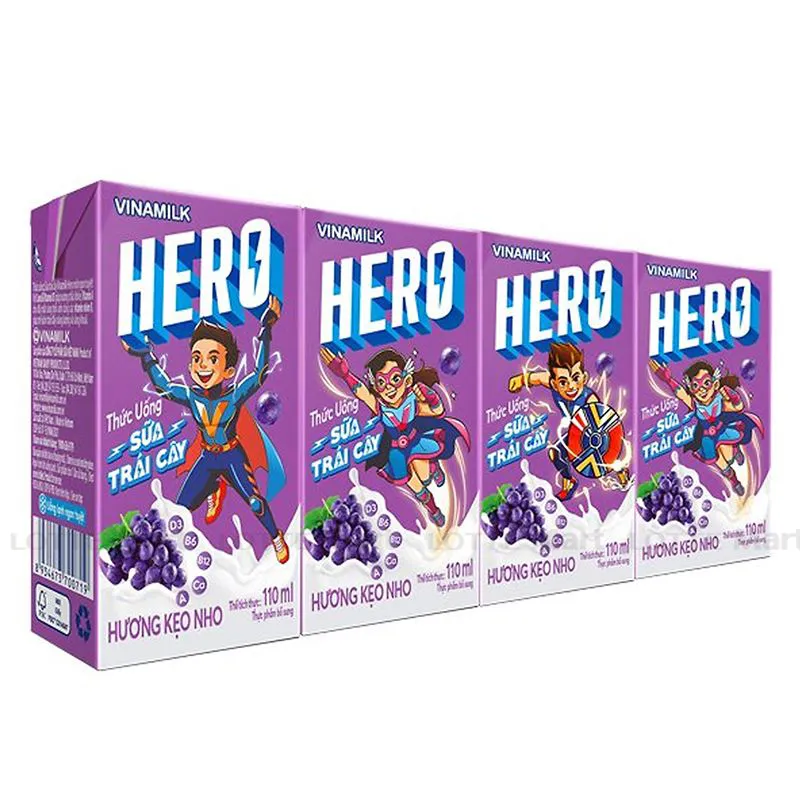 Sữa Trái Cây Vinamilk Hero Hương Kẹo Nho Lốc 4 Hộp 110ml