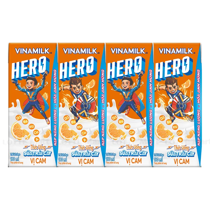 Sữa Trái Cây Vinamilk Hero Hương Cam Lốc 4 Hộp 180ml