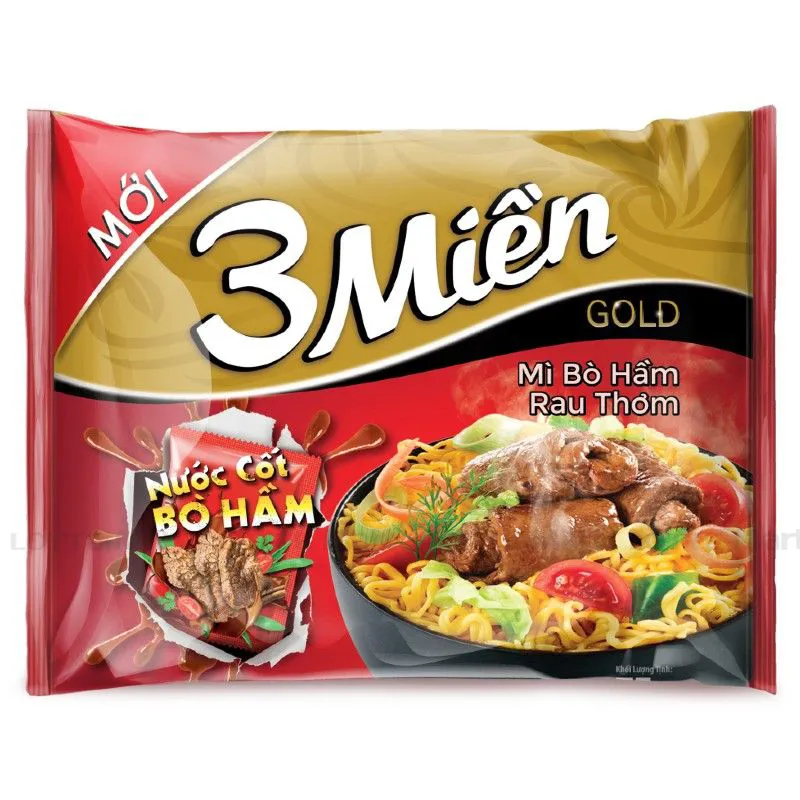 Mì 3 Miền Gold Bò Hầm Rau Thơm Gói 75G