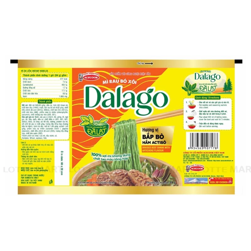 Mì Rau Bó Xôi Dalago Bắp Bò Hầm Atiso Gói 84G