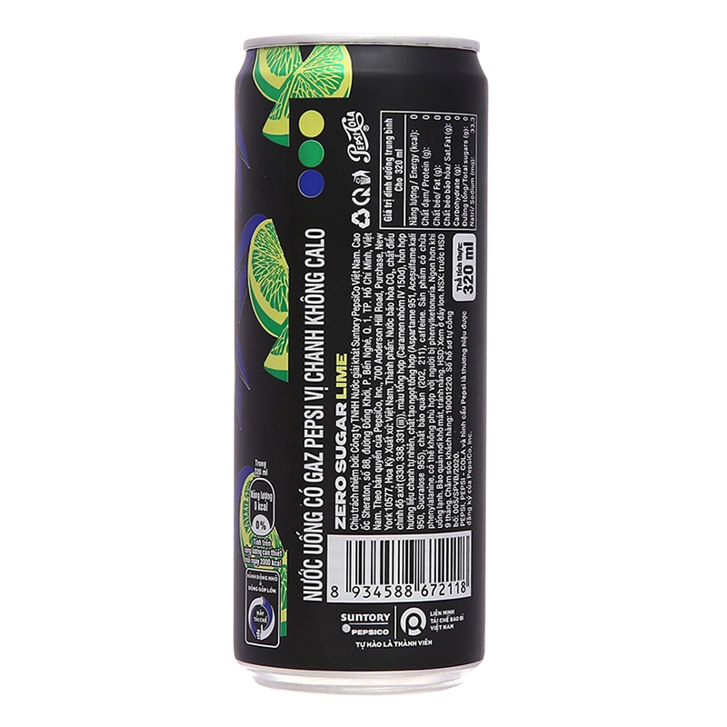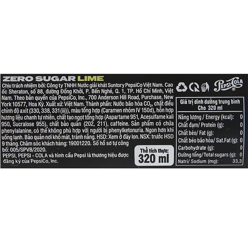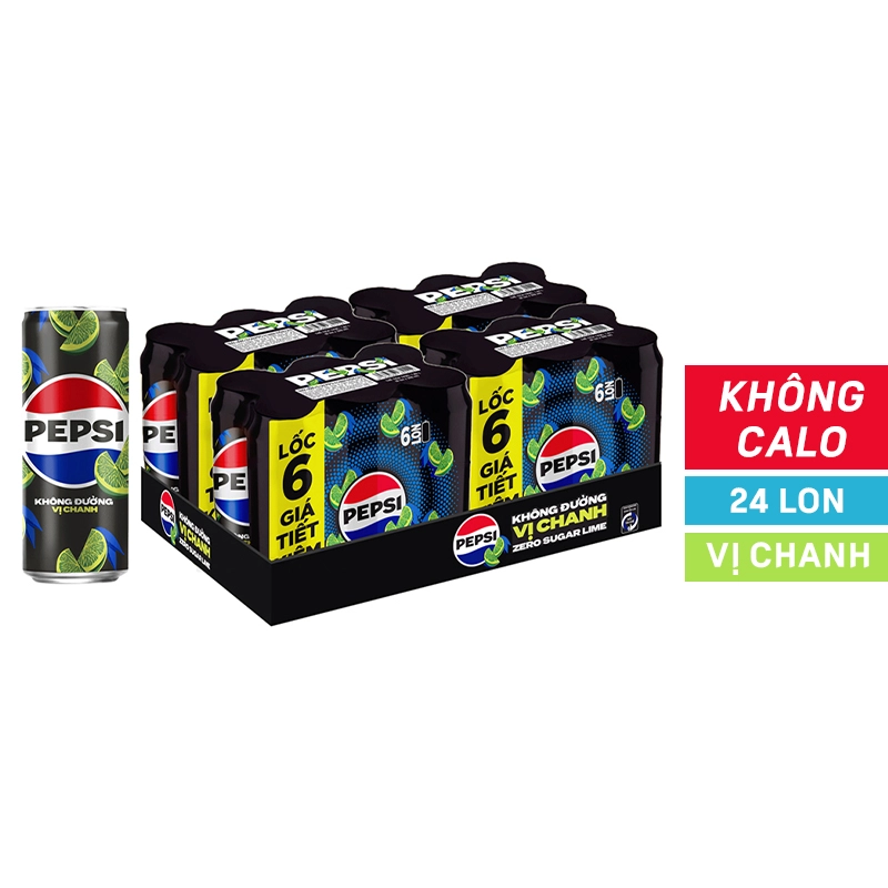 Thùng 24 Lon Nước Ngọt Pepsi Vị Chanh Không Calo 320ml