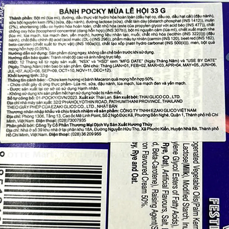 - Bánh Pocky Festival Lễ Hội Hộp 33G được đóng hộp nhỏ tiện lợi, vỏ hộp lấy tông màu tím - hồng ngọt ngào, lạ mắt. Bánh được làm từ các nguyên liệu cao cấp, đảm bảo an toàn vệ sinh thực phẩm, cùng quy trình sản xuất hiện đại, đạt tiêu chuẩn quốc tế.