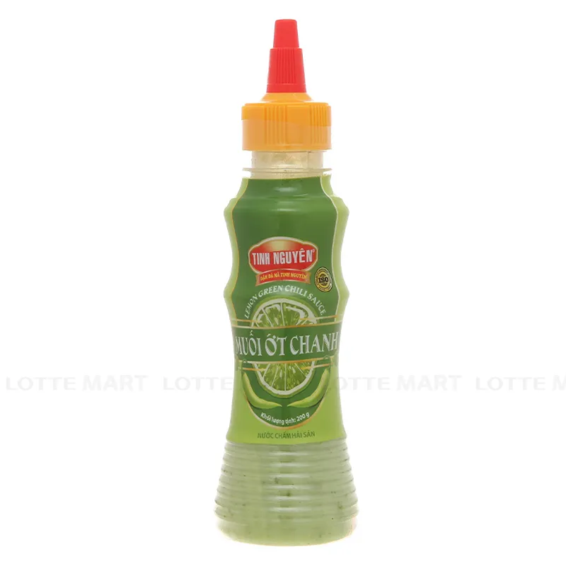Sốt Muối Ớt Chanh Tinh Nguyên Chai 200G có vị chua của chanh tươi và các gia vị khác tạo thành loại sốt màu xanh sánh mịn và là loại gia vị ăn kèm tuyệt vời cùng các món hải sản hoặc có thể dùng muối ớt chanh để làm gia vị ướp cho các món nướng.