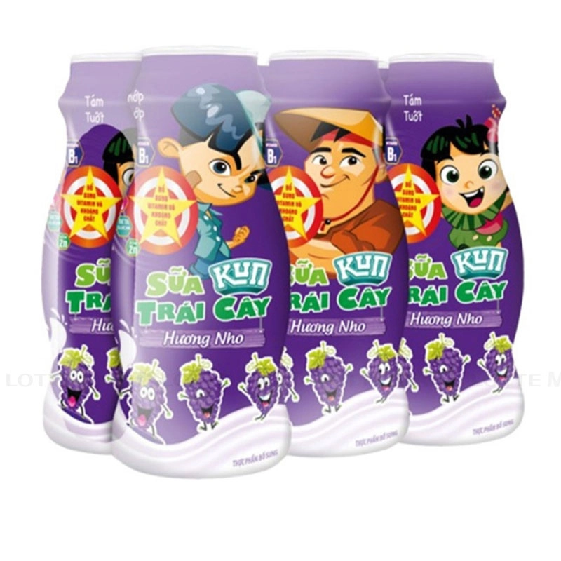 Sữa Trái Cây Hương Nho Lof Kun làm từ sữa và nước trái cây nguyên chất cùng bộ vi chất dinh dưỡng (B1, B3, B6, Beta Glucan, Kẽm) giúp hỗ trợ hệ miễn dịch & tăng sức đề kháng mỗi ngày.