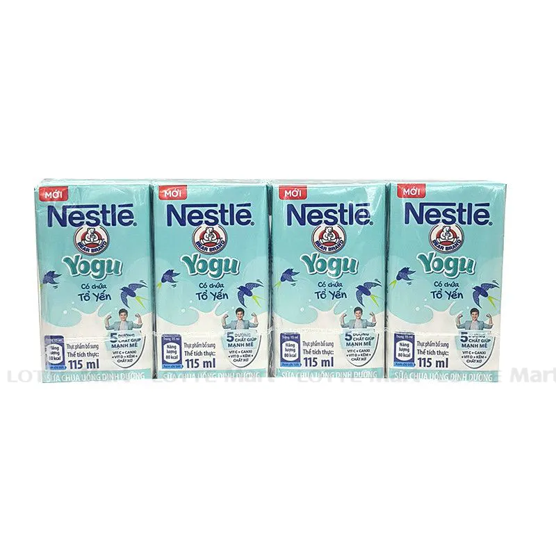 - Sữa Chua Tổ Yến Nestlé Yogu Hộp 115Ml có chứa tổ yến và 5 dưỡng chất thiết yếu vitamin A, vitamin D, canxi, kẽm và chất xơ giúp trẻ mạnh mẽ mỗi ngày.