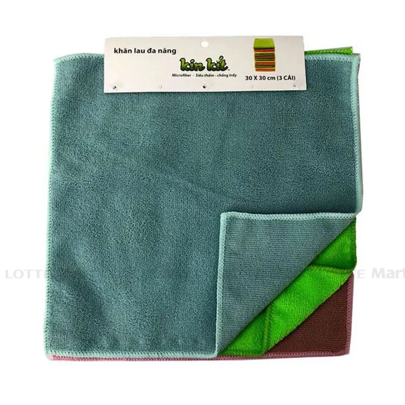 Lốc 3 khăn lau đa năng Microfiber 30 x 30cm được may từ chất liệu Microfiber siêu thấm hút, có khả năng thấm nước lớn hơn gấp 8 lần trọng lượng bản thân nó. Sản phẩm dễ vắt khô, thấm hút nước nhanh, không để lại vệt nước khi lau.