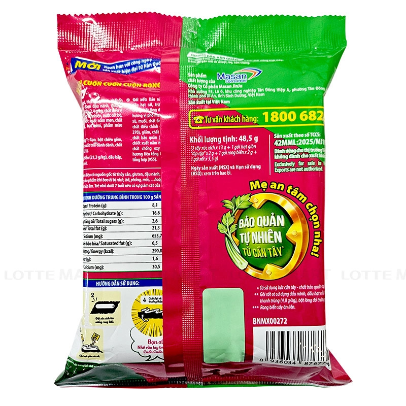 - Sản phẩm được đóng gói trong bao bì nhỏ gọn, dễ dàng sử dụng và bảo quản, là một món ăn nhanh tiện lợi, dễ dàng mang theo trong các chuyến đi, bữa ăn nhẹ hoặc làm đồ ăn phụ trong các buổi picnic, dã ngoại.