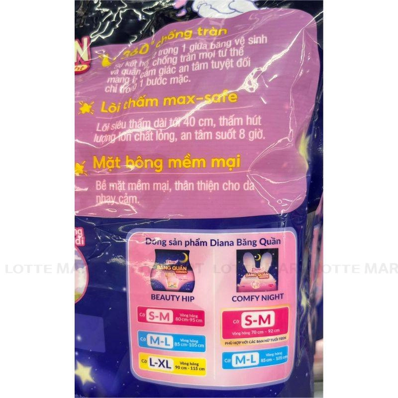 - Băng Vệ Sinh Dạng Quần Diana Comfy Night Size S-M là sản phẩm chuyên dụng dành cho những ngày đèn đỏ, mang lại cảm giác thoải mái và an toàn suốt đêm. Thiết kế dạng quần giúp ôm sát cơ thể, ngăn ngừa tràn hiệu quả.